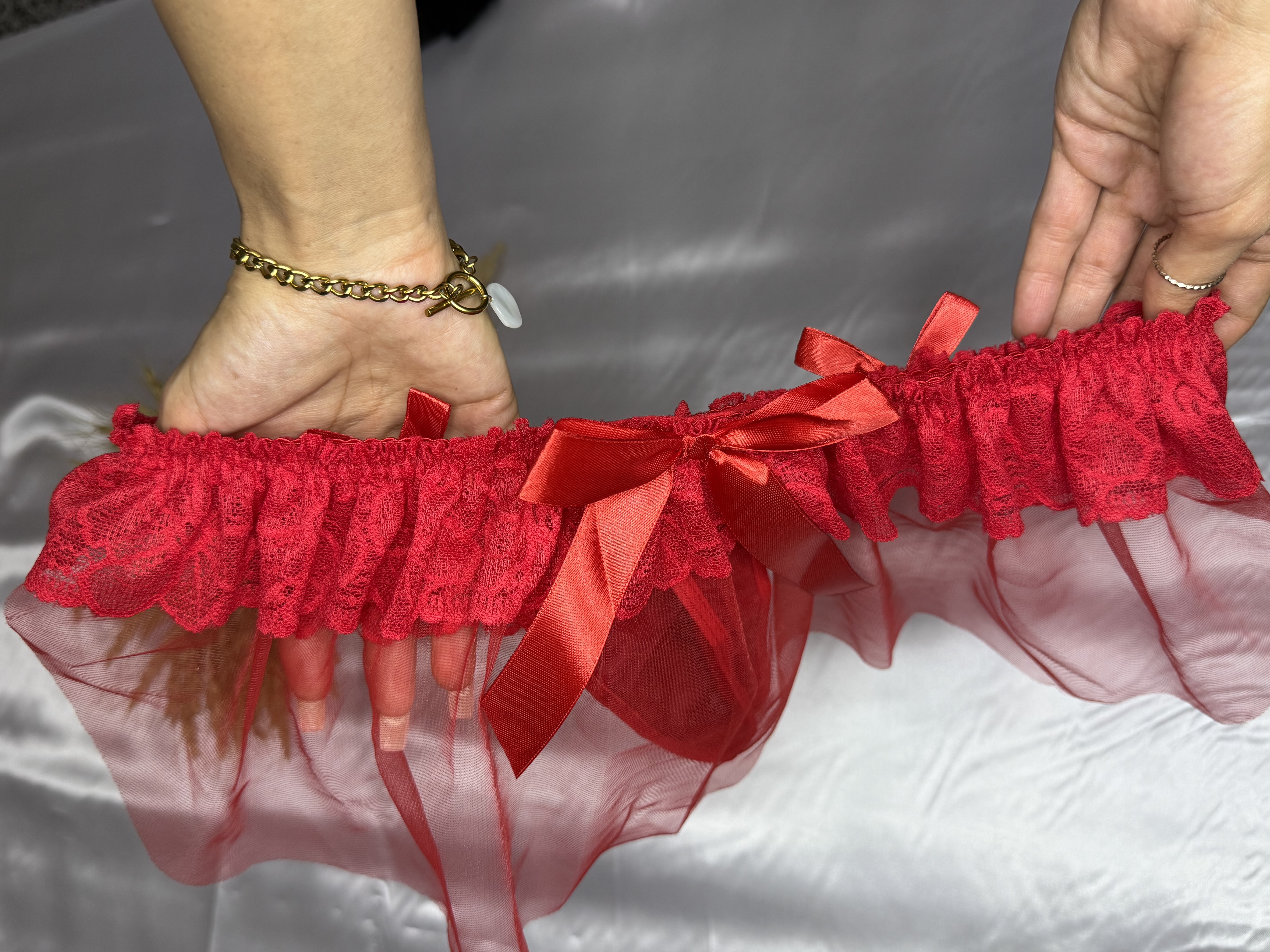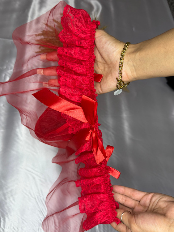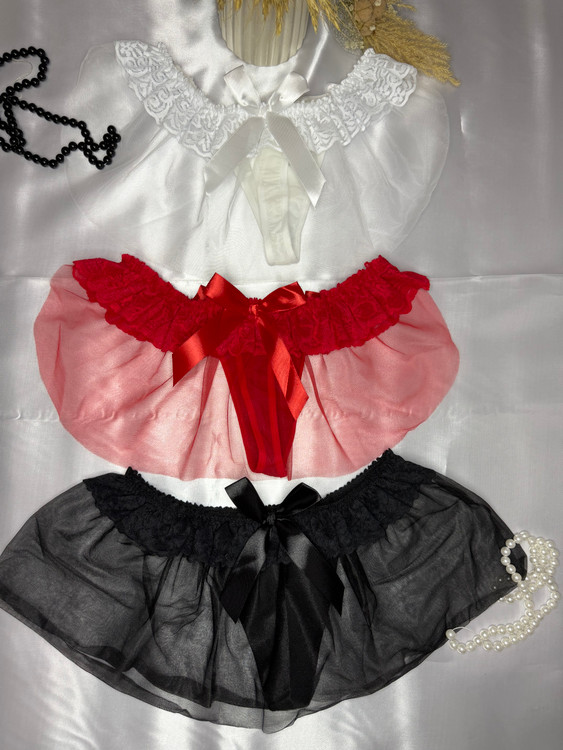 شرت فانتزی دامنی، با این شرت جذاب هم دامن داری هم شرت، پاپیون کار شده روی تور دامن درخشش و زیبایی بیشتری به این شرت داده جنس دامن توری است فاق شرت ۲ لایه است بالای دامن دانتل ظریف کارشده ک خاص ترش کرده رنگ مشکیش ۲ طرفه کار تور کار شده رنگ سفید و قرمز فقط پشت کار تور کار شده، با این شرت استایلت تکمیله ، تنخور فوق العاده جذاب داره