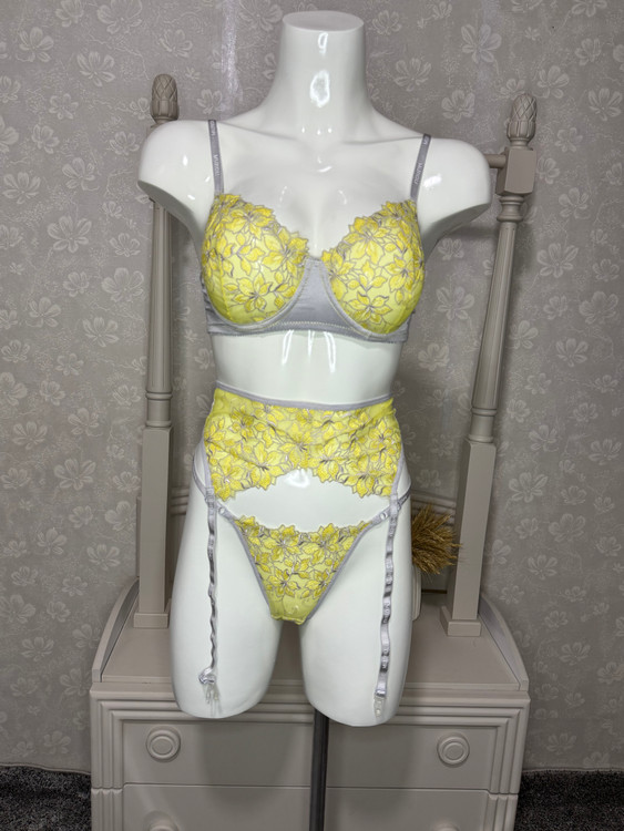 ست۳ تیکه شورت و سوتین توری همراه با بندجوراب کد محصول ۱۰۰۶