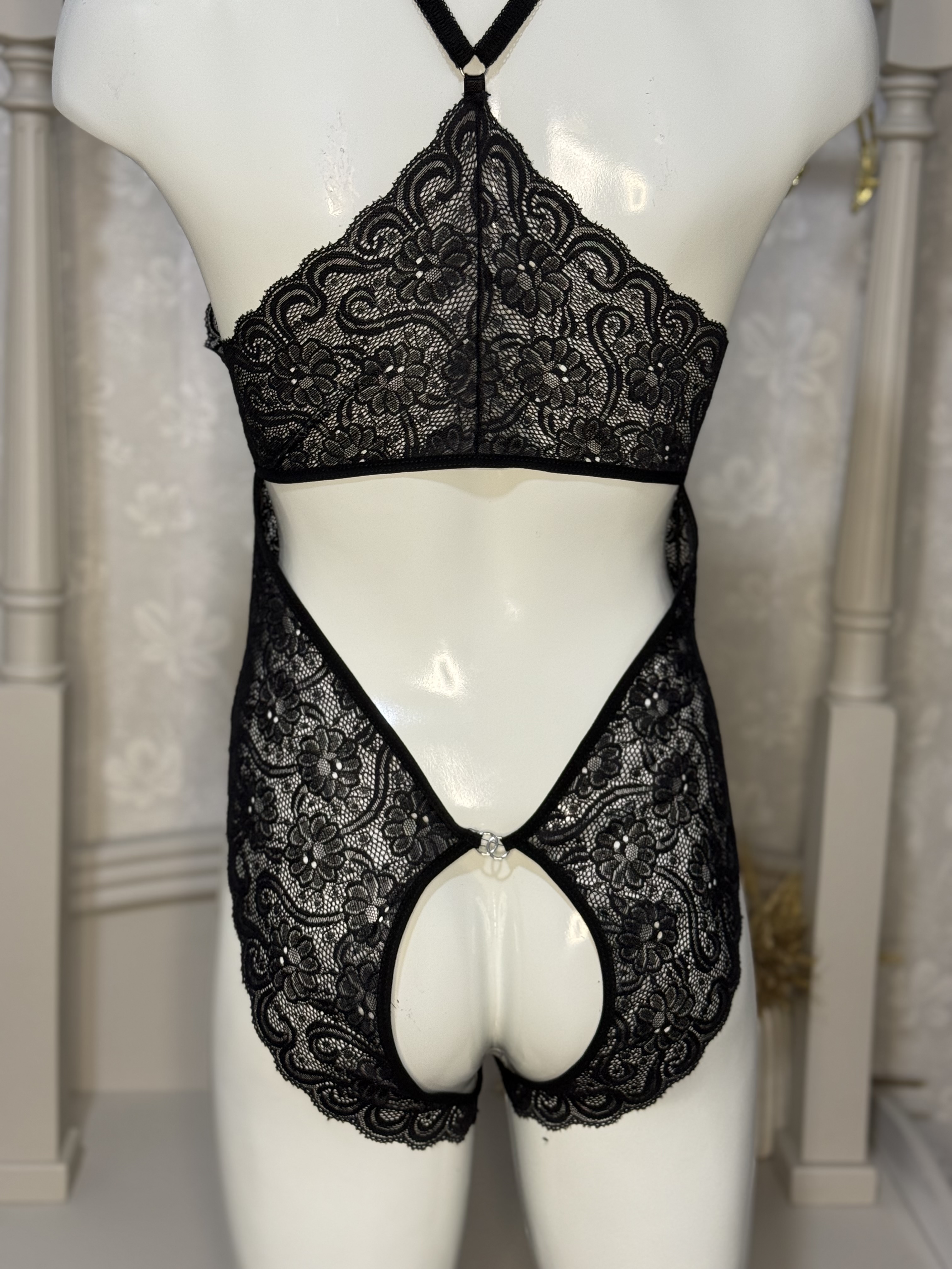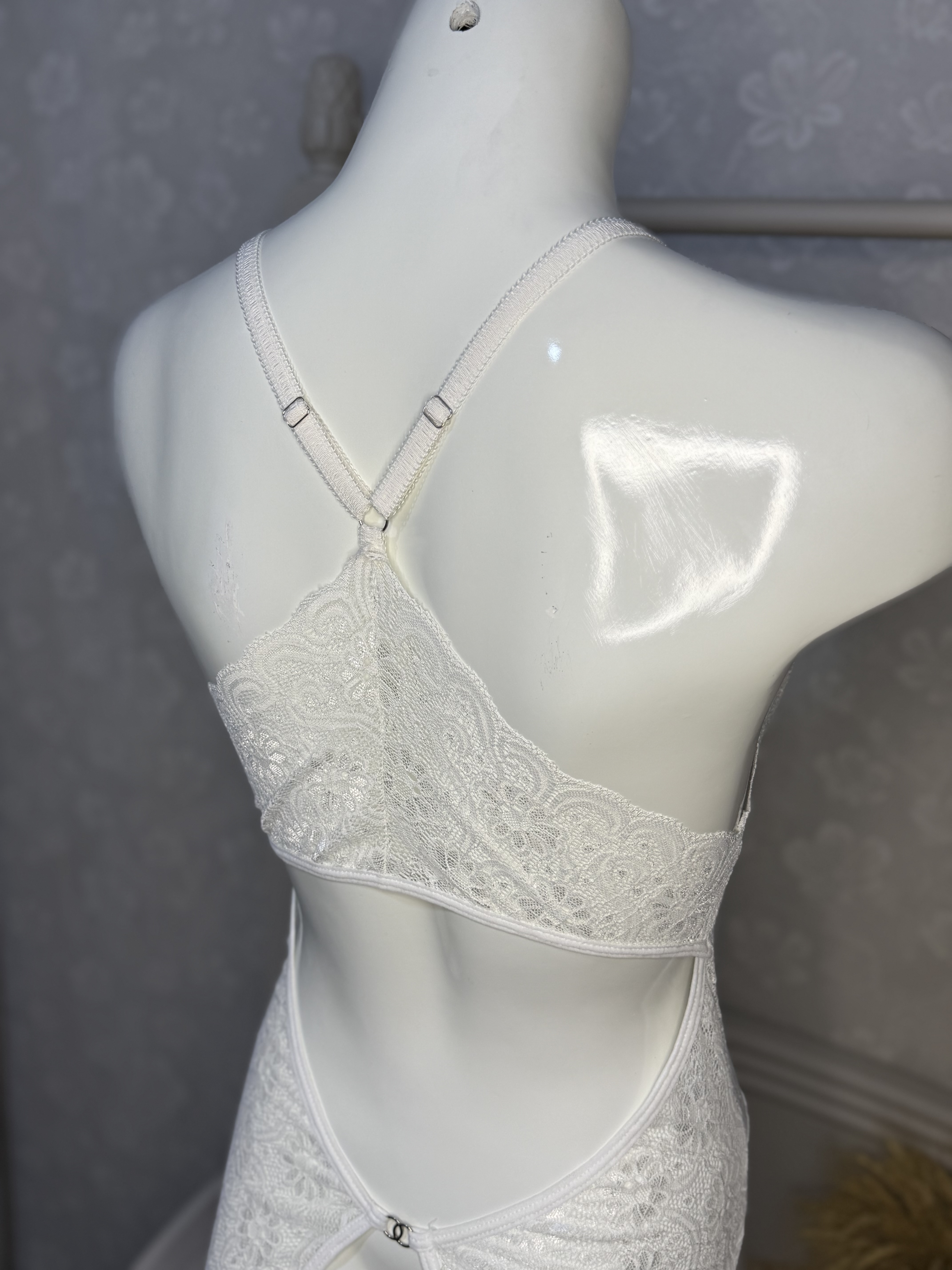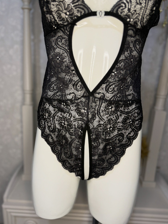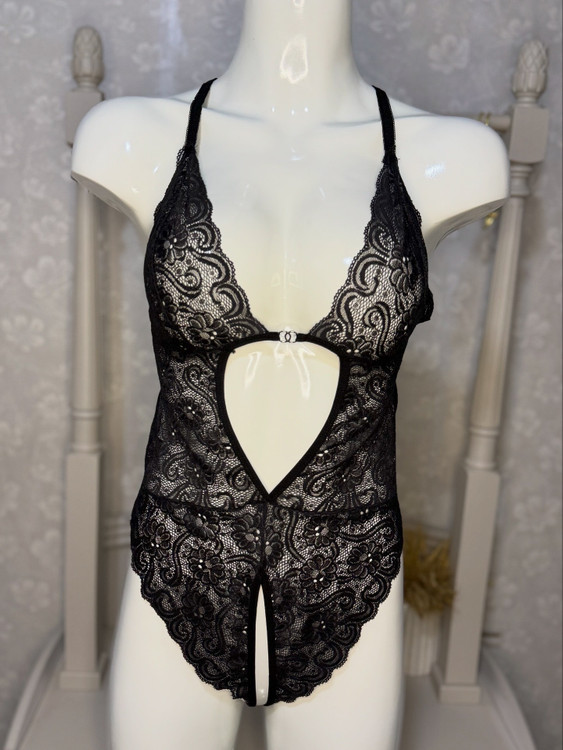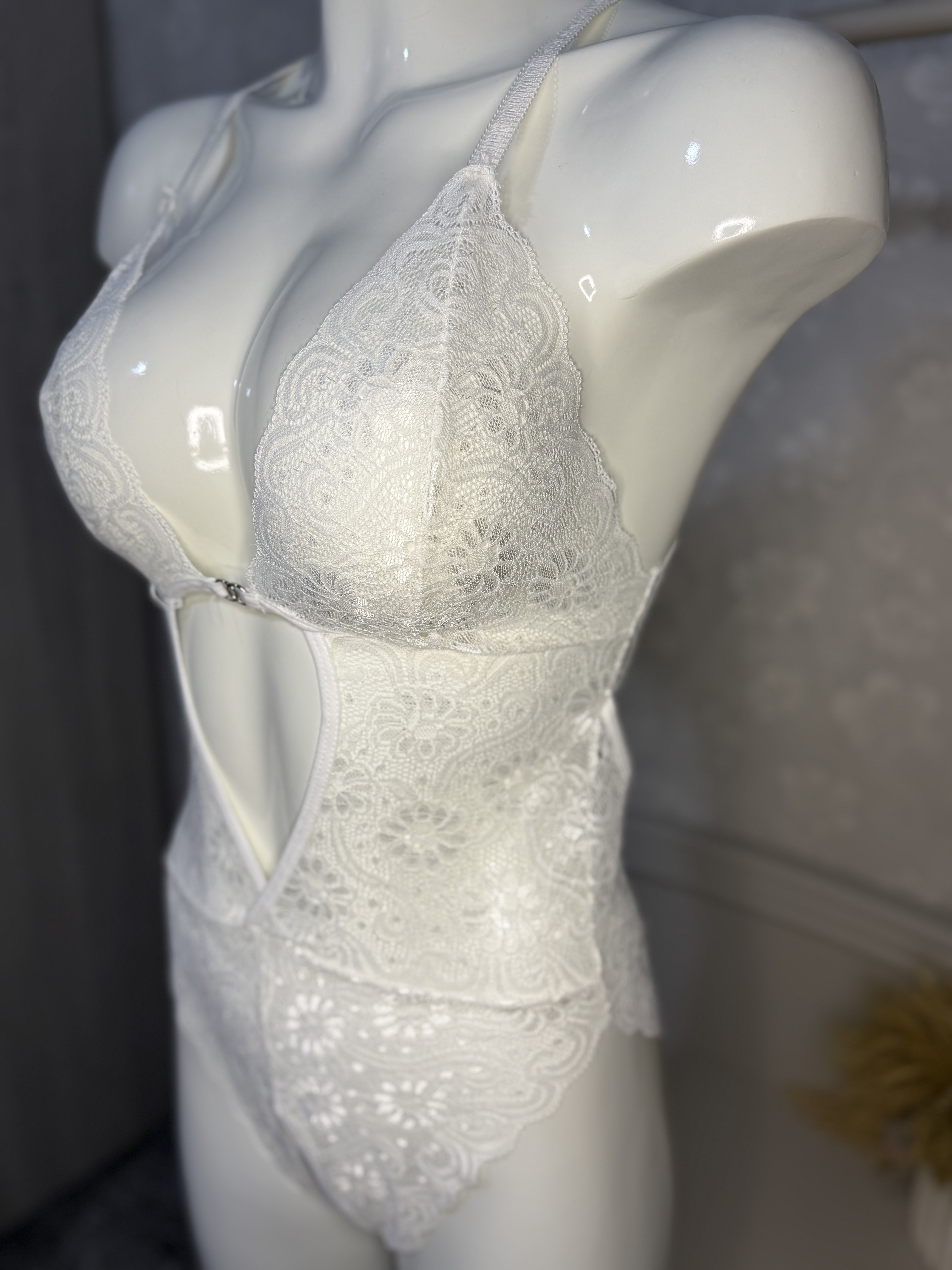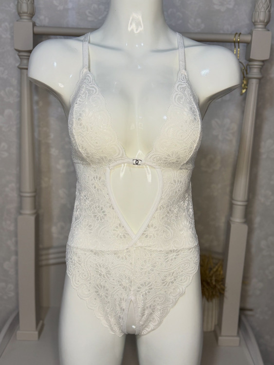 بادی فانتزی با طراحی خاص از جنس گیپور ظریف که جلوه ای بسیار شیک وچشم نواز ایجاد میکند این مدل با فاق باز و طراحی باز در قسمت جلو وپشت کار استایلی جسورانه دارد و برای موقعیت های خاص انتخابی فوق العاده است کاپ این کار بدون فنر طراحی شده تا راحتی بیشتری ایجاد کند و در ین حال فرم طبیعی تر ب بدن میدهد بندهای سرشونه قابل تنظیم و به خوبی روی بدن فیت میشود