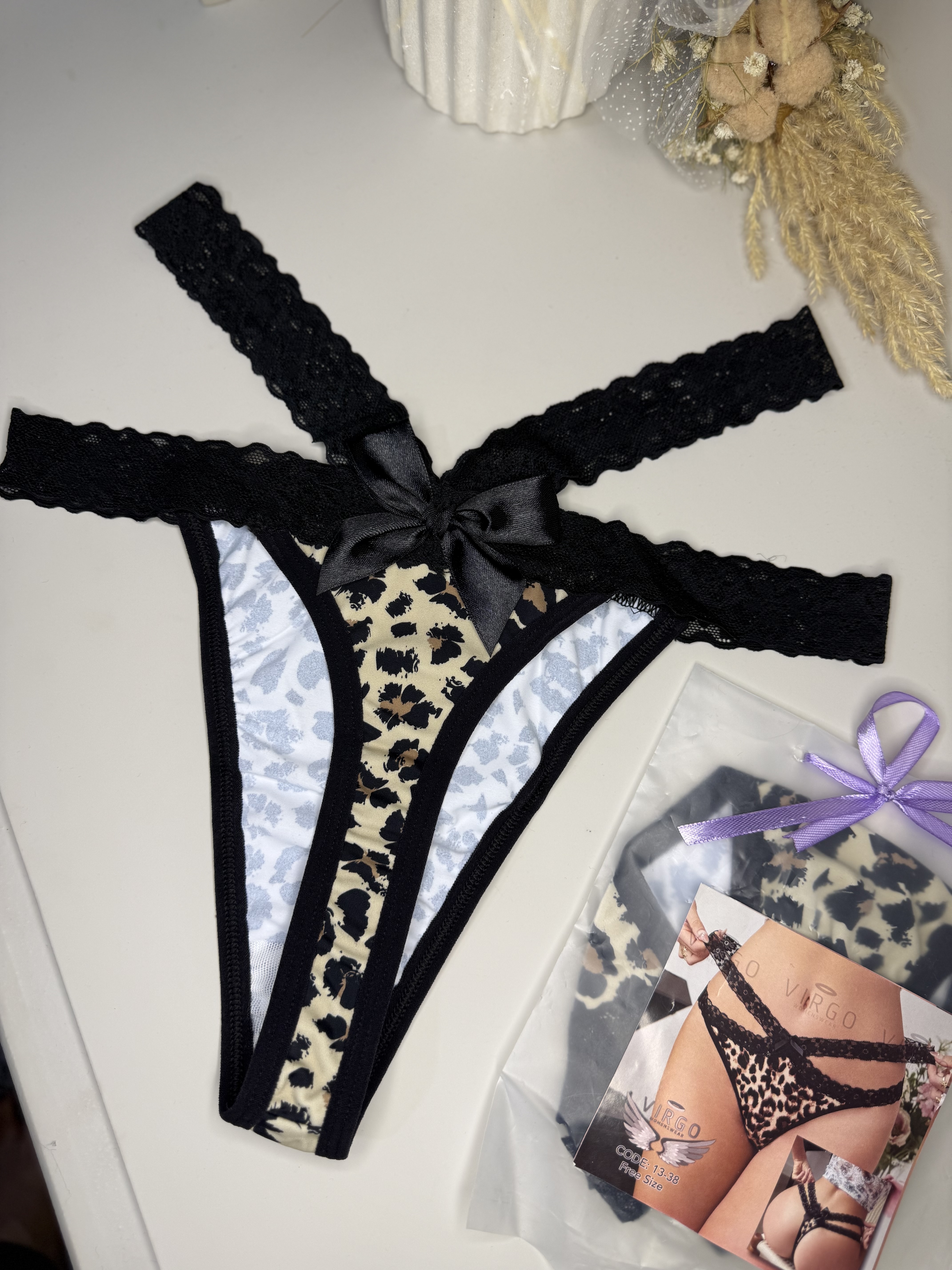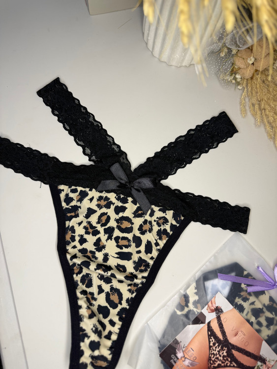 شرت فانتزی پلنگی با بندهای گیپوری ضربدری ک روی کمر قرار میگیره